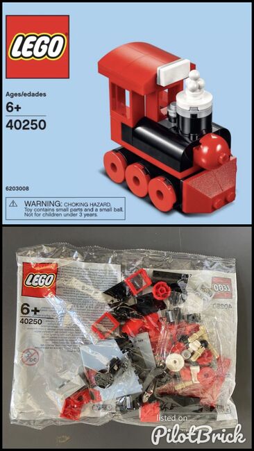 New in Sealed Poly Bag The LEGO Monthly Mini Model Build Set 40250 (December 2017) is a 56-piece mini train locomotive featuring a red and black design. Distributed in a polybag at LEGO stores for a monthly building event. The set replicates a classic-style train locomotive