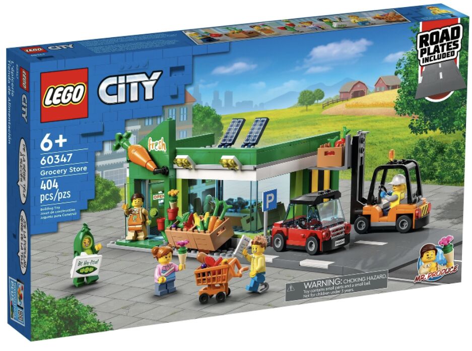 New & in Sealed Box (actual Pictures are available) This LEGO® City Grocery Store (60347) set is stocked with everything kids need for imaginative shop play. The toy supermarket is stocked with all kinds of produce and comes with an EV, forklift truck and shopping cart. Kids can also attach the store’s Road Plate parking lot to other LEGO playsets for extended play, and the 5 minifigures include LEGO City Adventures TV series character Mr. Produce. Designed for boys and girls aged 6 and up This playset comes with an easy-to-follow building guide so kids can choose to construct their own LEGO toys or join friends and family members for a fun build-and-play experience. Kids explore the world through play LEGO City playsets put kids at the heart of the action with realistic vehicles, feature-rich structures and inspiring characters for fun role play that’s based on real-life scenarios. Toy supermarket playset – Kids aged 6+ can enjoy endless hours of imaginative role play with this LEGO® City Grocery Store (60347) playset What’s in the box? – All kids need to create a toy supermarket, EV and forklift truck, plus a LEGO® Road Plate and 5 minifigures, including LEGO City Adventures TV series character Mr. Produce Features and functions – Kids can transport crates with the toy forklift, display produce, load the recycling container and connect to other LEGO® City playsets via the included Road Plate A gift for imaginative kids – This LEGO® City supermarket playset can be given as a birthday, holiday or any-other-day gift for boys and girls aged 6 and up Lots of room for shopping play – When built, the Grocery Store measures over 4 in. (11 cm) high, 14 in. (36 cm) wide and 5 in. (13 cm) deep Includes fun LEGO® minifigure accessories – This Grocery Store playset comes with a toy shopping cart, fish, bread and diverse fruits and veggies Build and play fun – This LEGO® City playset comes with easy-to-follow building instructions for all the included LEGO toys Kids learn through play – The buildings, vehicles and characters featured in LEGO® City playsets inspire imaginative and creative play that helps children develop important life skills and confidence Quality assured – Every LEGO® component meets stringent industry standards to ensure it is consistent, compatible and fun to build with Safety first – LEGO® components are dropped, heated, crushed, twisted and analyzed to make sure they meet strict global standards for safety
