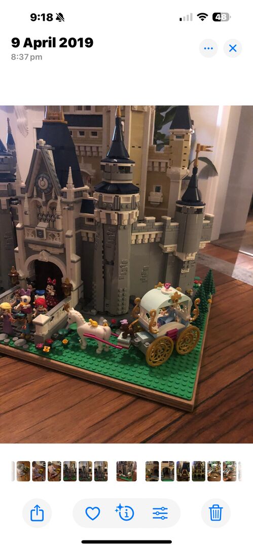 Disney Castle with Disney Train and Rapunzels Tower built with led illumination lights as a model nightlight for my daughter’s room. Displayed on shelf not played with so in incredible condition. Castle is now discontinued. When individually purchased all three sets valued at $2,000 selling as set not individual. Have video of train weaving past castle and night light 💡 led illumination at request for reference.