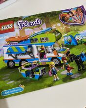 Lego Friends Mia’s Camper Van set. Box not Included , Instructions Included , mini figures , accessories and all needed pieces to build included. Missing one sticker (as shown in 4th photo) but identical piece included.