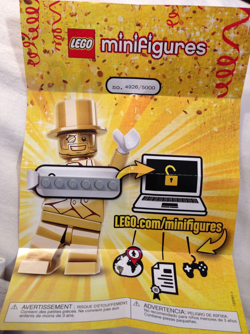 Seller: Evan Mugford Flag CA LEGO Minifigure - Series 10 - AUTHENTIC Mr. Gold in Great Condition - 1 of 5000 IN THE WORLD